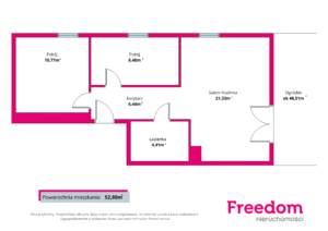 - Powierzchnie pokoi: 10,77 8,48 21,33