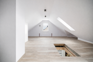 - duża, otwarta przestrzeń o pow. 48,15 m2 która, w najwyższym punkcie ma 2,7 m wysokości!
