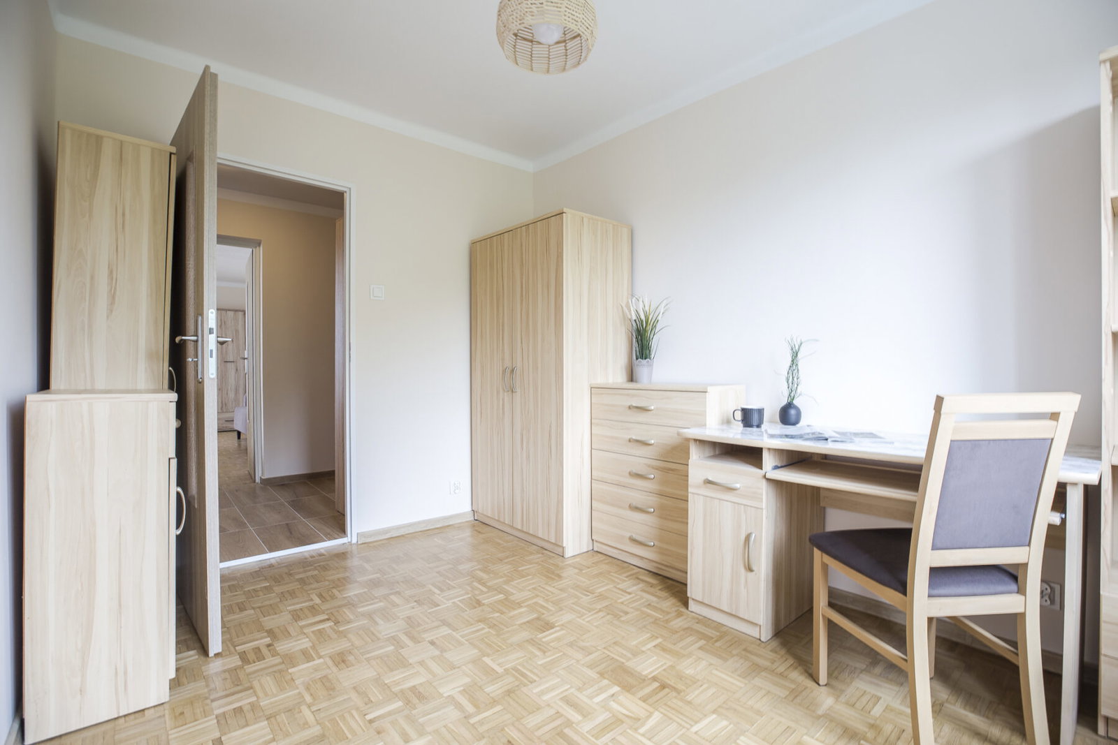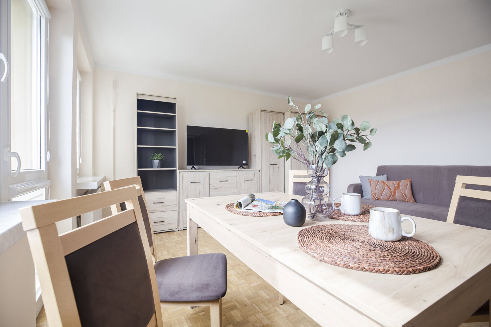 Całość uzupełniają nowe meble, dzięki czemu mieszkanie jest w pełni przygotowane do zamieszkania lub natychmiastowego wynajmu.