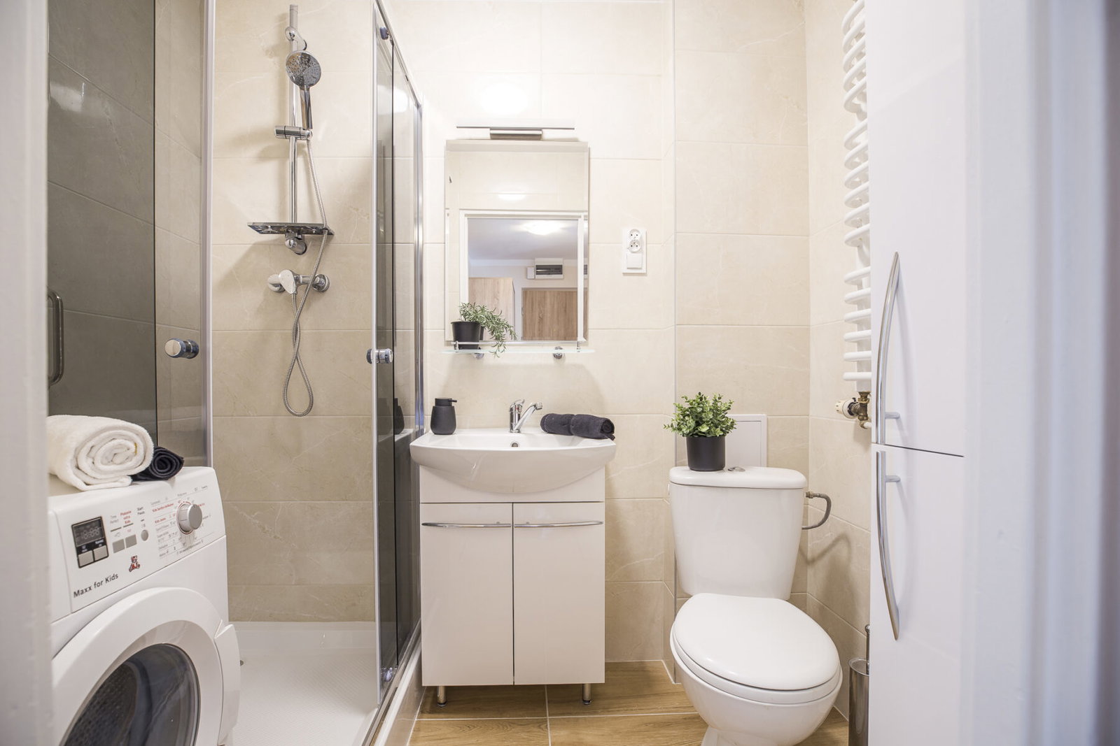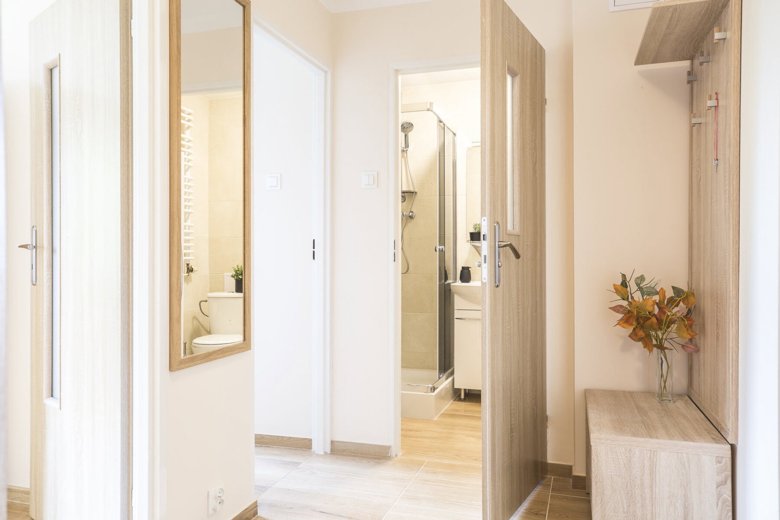 - Łazienki z WC, całkowicie nowej, wykończonej w jasnych barwach