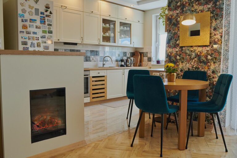 Osobna kuchnia zapewnia wygodę przygotowywania posiłków, a łazienka została zaprojektowana funkcjonalnie.