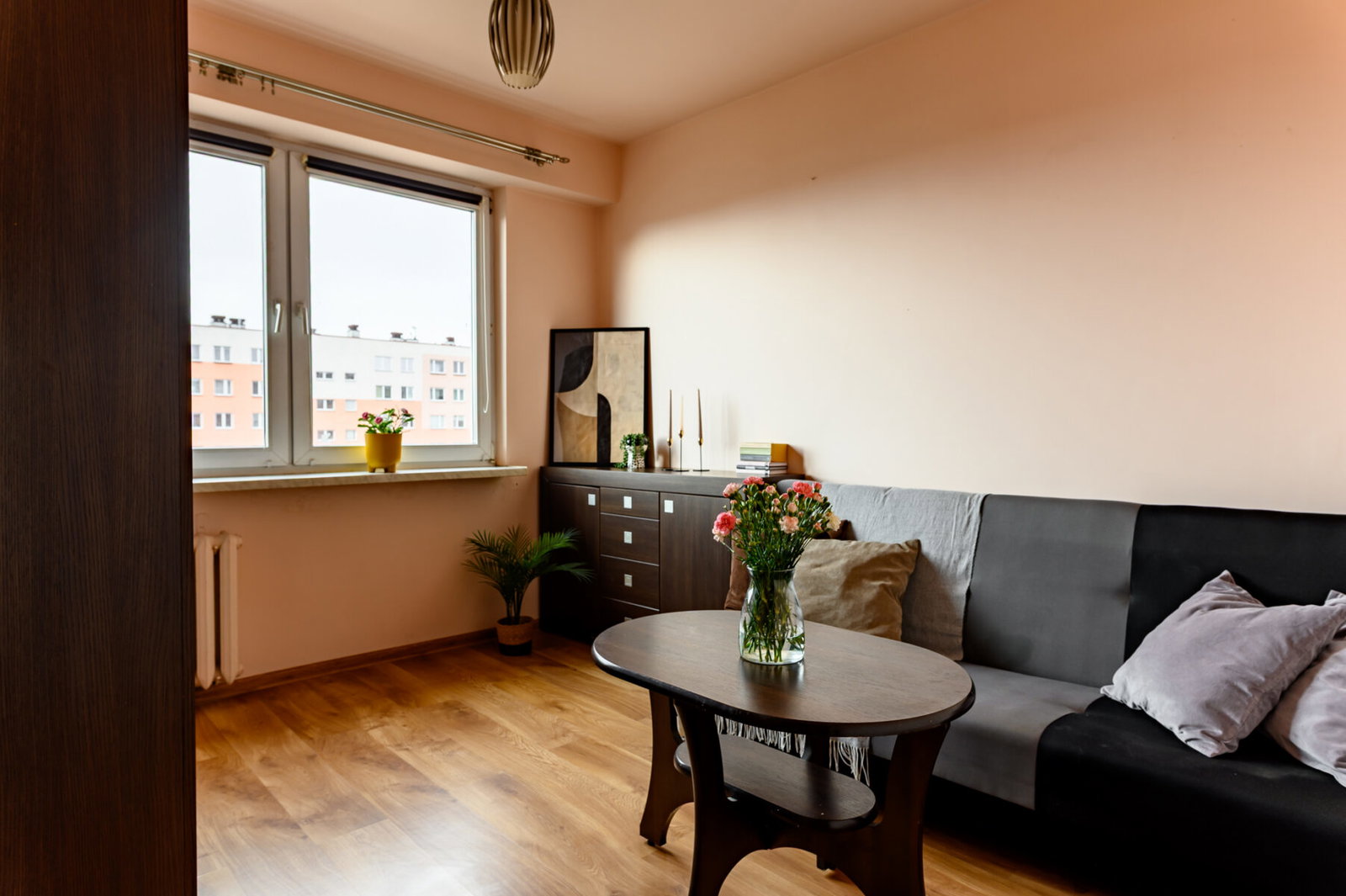 Przystanek komunikacji miejskiej umożliwia szybki dojazd do centrum miasta. To mieszkanie łączy funkcjonalność z potencjałem aranżacyjnym.
