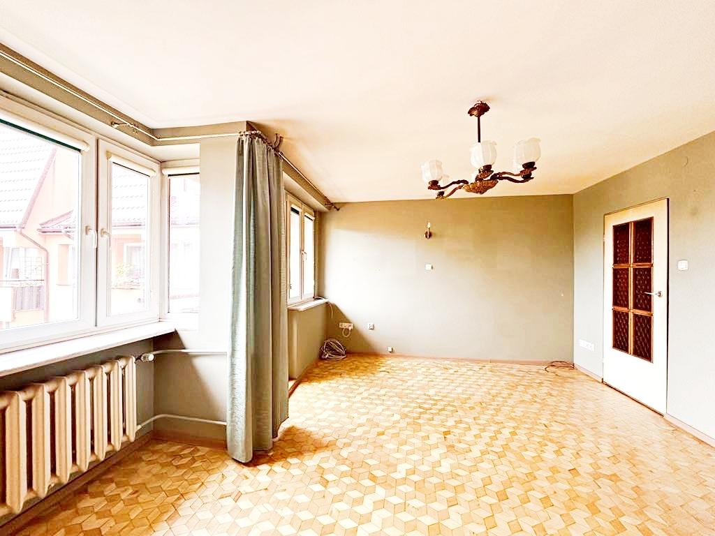 Mieszkanie kwalifikuje się do remontu, co daje możliwość dostosowania go do własnych potrzeb. Na podłogach znajduje się parkiet w stylu mozaiki, a w łazience, toalecie i kuchni terakota.