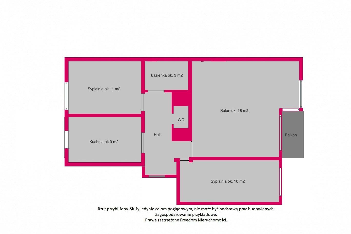 Właścicielem ogłoszenia wraz z jego elementami jest Freedom Nieruchomości Sp. z o.o. lub podmioty współpracujące. Wszelkie prawa zastrzeżone. Kopiowanie, rozpowszechnianie oraz korzystanie z niniejszych materiałów w jakikolwiek inny sposób wykraczający poza dozwolony użytek określony przepisami ustawy z 4 lutego 1994 r. o prawie autorskim i prawach pokrewnych (Dz. U. 1994, nr 24 poz. 83 z późn. zm.) bez pisemnej zgody Freedom Nieruchomości Sp. z o.o. lub podmiotów współpracujących jest zabronione i może stanowić podstawę odpowiedzialności cywilnej oraz karnej. Ponadto niniejsze materiały stanowią tajemnicę przedsiębiorstwa Freedom Nieruchomości Sp. z o.o. lub podmiotów współpracujących w rozumieniu ustawy z dnia 16 kwietnia 1993 r. o zwalczaniu nieuczciwej konkurencji (Dz. U. z 2003 r., Nr 153, poz. 1503 z późn. zm.).