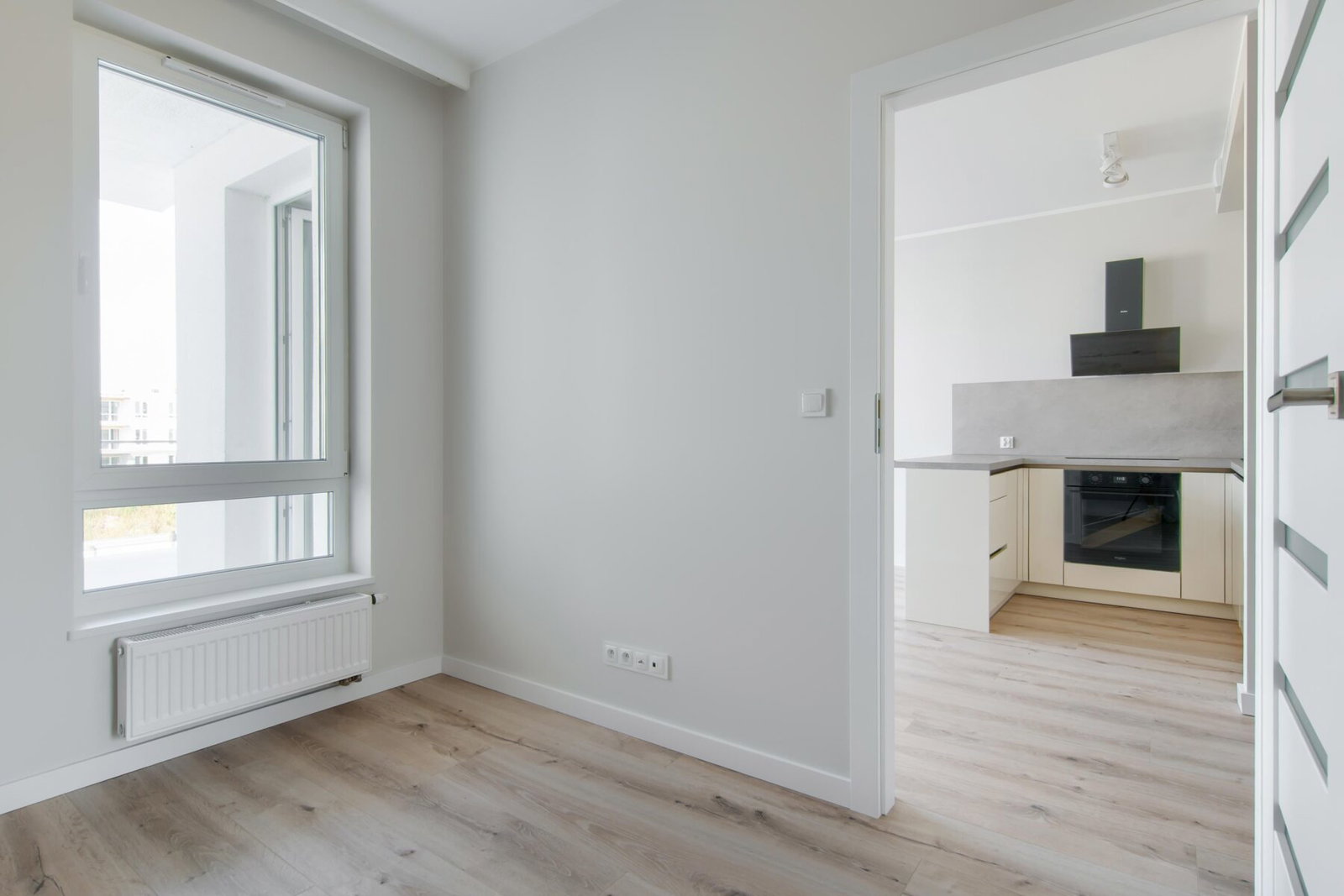 Mieszkanie ma dwa pokoje: salon z aneksem kuchennym o powierzchni 19 m² oraz sypialnię o powierzchni 9 m². Dodatkowo znajduje się łazienka oraz garderoba, co zapewnia dodatkową przestrzeń do przechowywania.