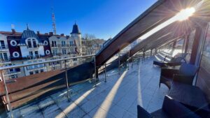 - Restauracja i Bistro & Cafe: Ogród zimowy, widok na promenadę z fontannami, panoramiczne okna, idealne miejsce na poranną kawę, lunch czy kolację.