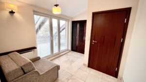 - Przedpokój: 10 m², z wyjściem na taras i możliwością zagospodarowania dodatkowej przestrzeni gościnno-sypialnej.