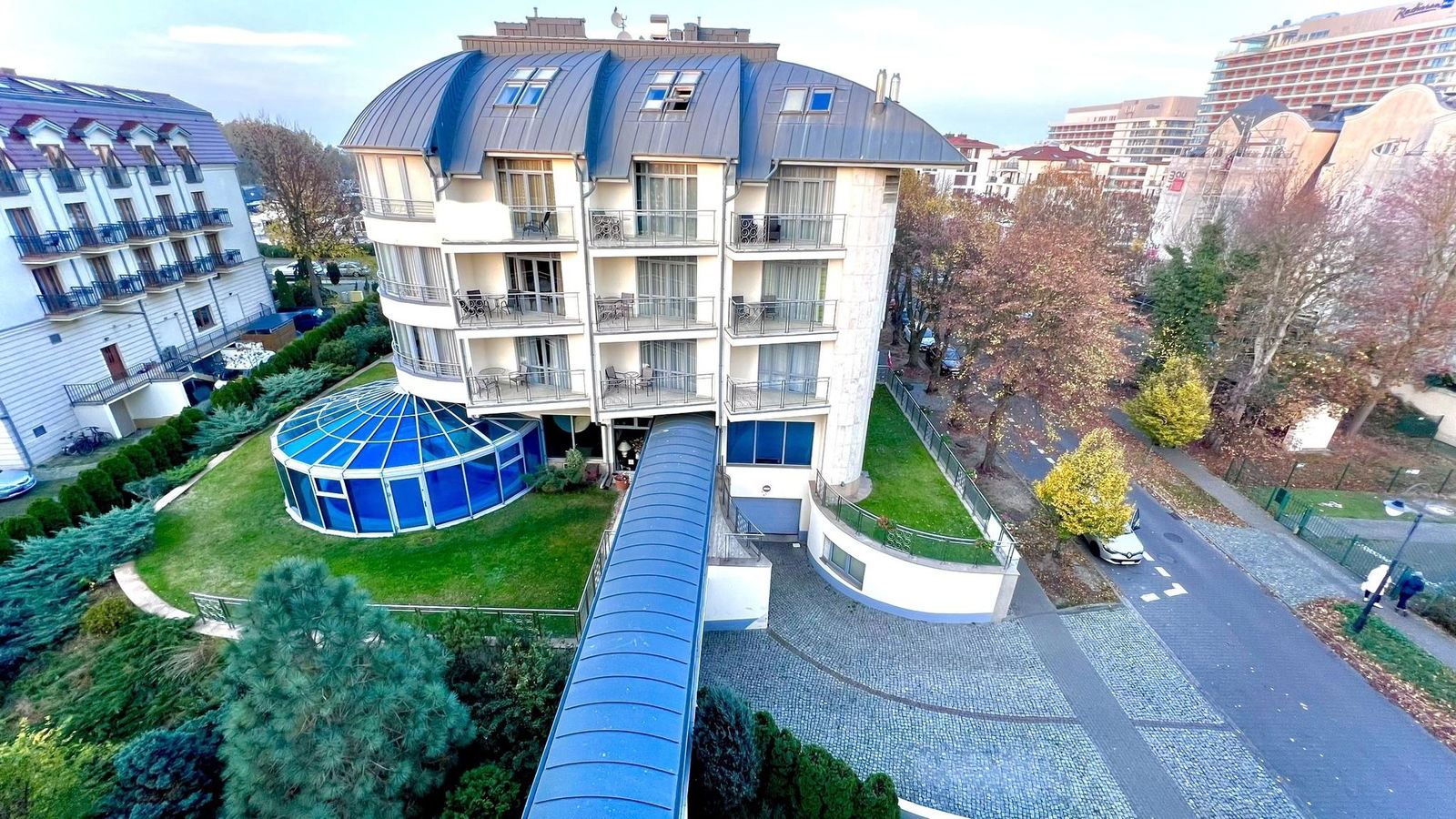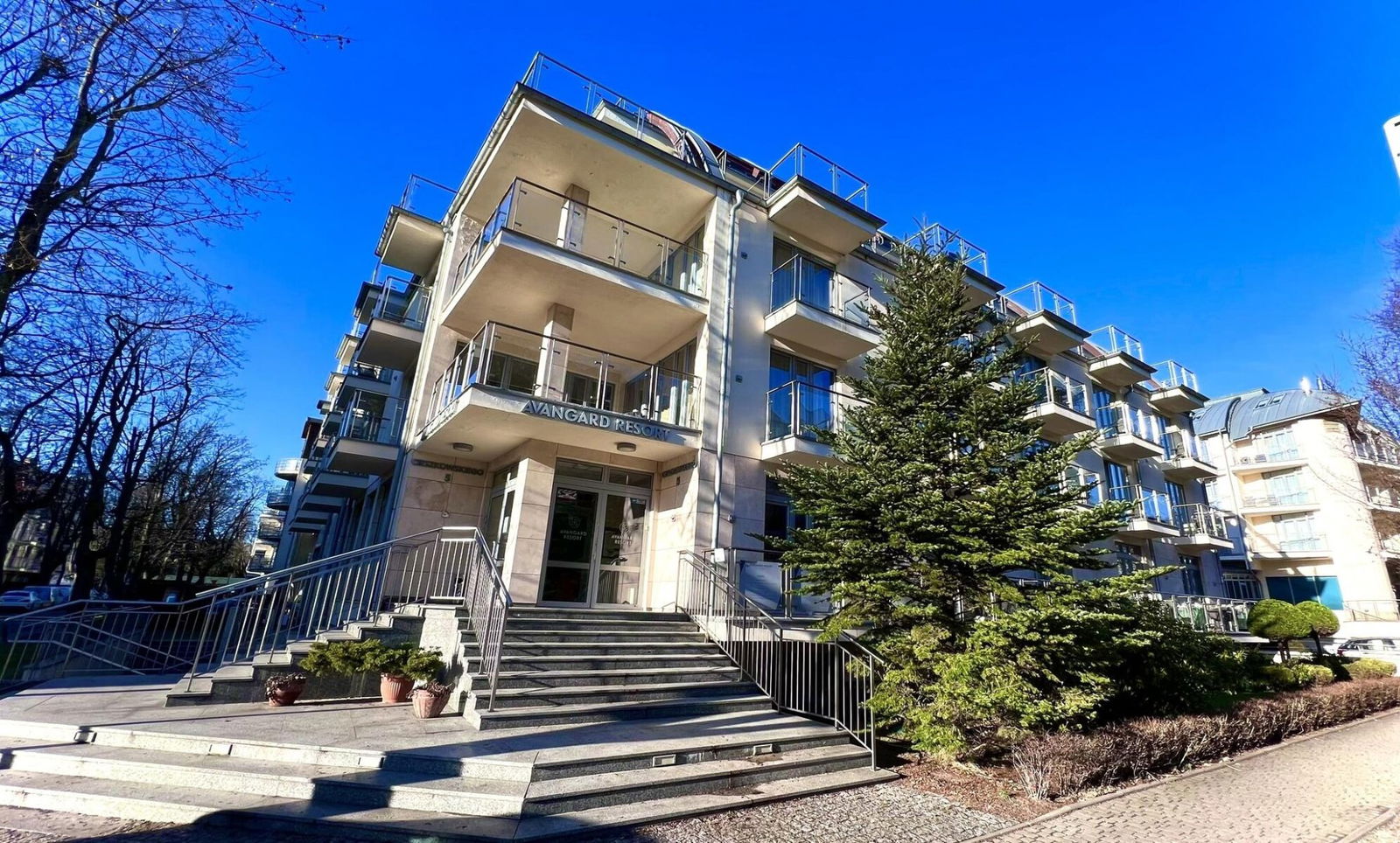 Avangard Resort: Obiekt mieszkalno-wypoczynkowy, umiejscowiony bezpośrednio przy nadmorskiej Promenadzie, w sąsiedztwie piaszczystej plaży i Morza Bałtyckiego.