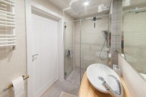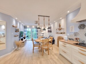 Ich freue mich, Ihnen eine außergewöhnliche Immobilie in einer der prestigeträchtigsten Lagen von Świnoujście – im Komplex Cesarskie Ogrody – präsentieren zu dürfen. Dieser Raum ist für Menschen geschaffen, die ein stilvolles Refugium am Meer suchen. Die Wohnung ist im maritimen Stil gehalten – dezente Farben, natürliche Materialien und Details, die vom Küstenklima inspiriert sind, schaffen eine Atmosphäre von Leichtigkeit, Frische und Komfort.