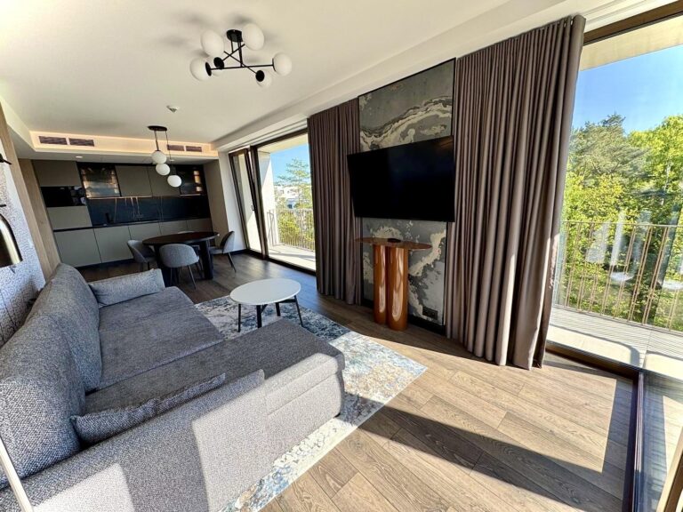 Das Anwesen, auf dem sich das Anwesen befindet, ist ein ruhiger und friedlicher Ort. Der Sicherheitsdienst rund um die Uhr und die Tatsache, dass das Gelände überwacht und eingezäunt ist, geben Ihnen ein Gefühl der Sicherheit. Der Gemeinschaftsraum der Gebäude ist wunderbar erschlossen und gepflegt – viel Grün, Blumen, Pergolen und Sträucher. Für die Bewohner gibt es eine Entspannungszone, in der Sie einen Brunnen, Bänke und einen Spielplatz für Kinder finden.