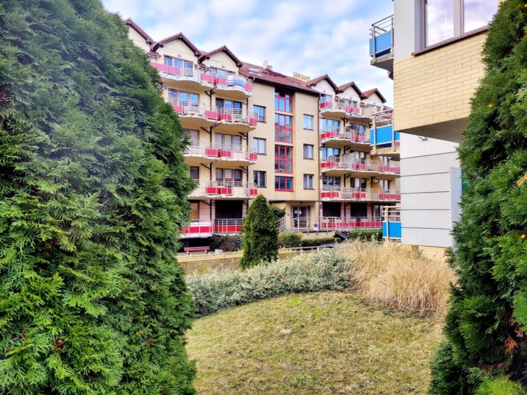 Osiedle na , który znajduje się nieruchomość jest cichym i spokojnym miejscem . Całodobowa ochrona oraz to że teren jest monitorowany i ogrodzony zapewni Państwu poczucie bezpieczeństwa. Przestrzeń wspólna budynków jest wspaniale zagospodarowana i zadbana- duża ilość zieleni, kwiatów, pergoli oraz krzewów . Znajduje się tam strefa relaksu dla mieszkańców ,w której znajdziemy fontannę , ławeczki i plac zabaw dla dzieci.