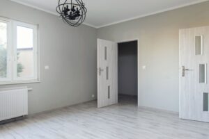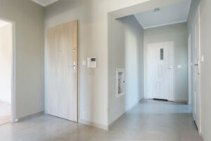 - Podłogi w pomieszczeniach: Płytki, Panele