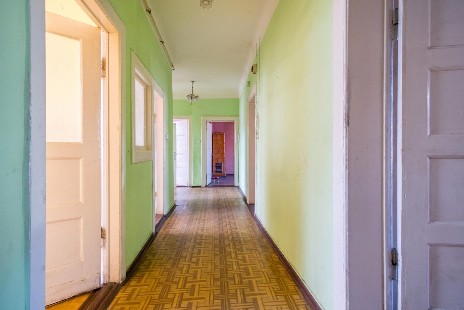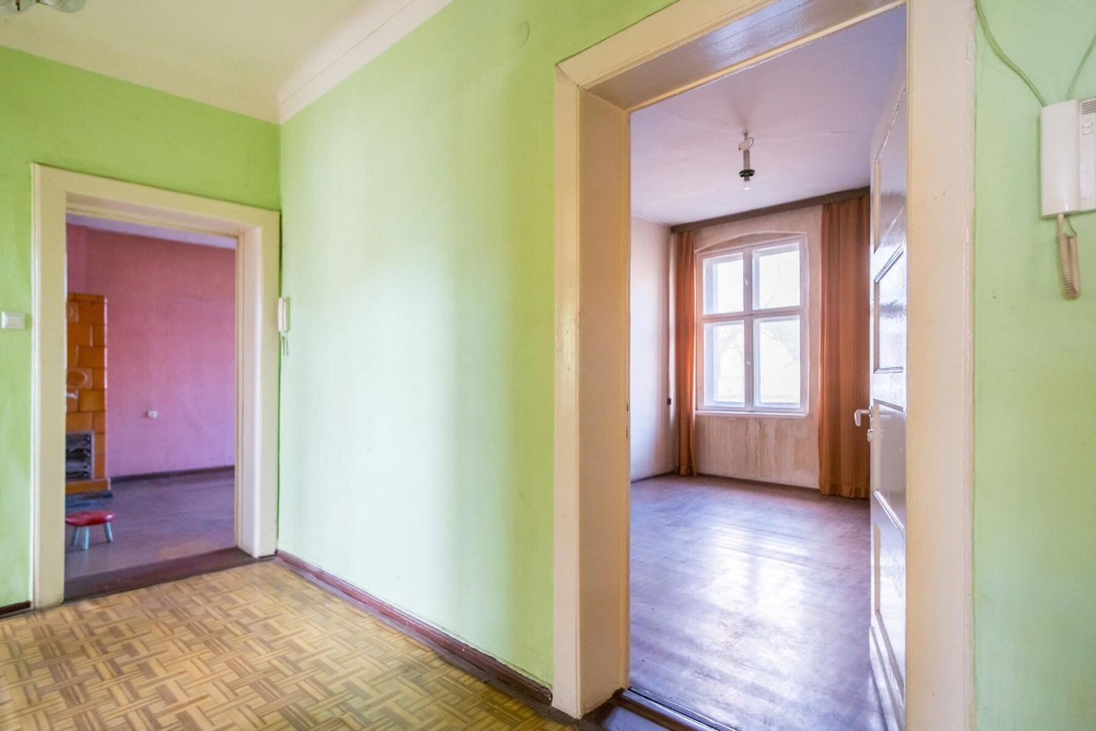 W mieszkaniu znajdują się dwie kuchnie i dwie łazienki, a szeroki korytarz daje poczucie przestronności i elegancji już od wejścia. Piece kaflowe, które można wykorzystać jako elementy dekoracyjne, nadają wnętrzu wyjątkowy klimat i styl. Lokal wymaga generalnego remontu, co jest dodatkowym atutem – daje pełną swobodę aranżacji wnętrz zgodnie z własną wizją i specyfiką prowadzonej działalności. Mieszkanie jest już opróżnione, co pozwala na natychmiastowe rozpoczęcie prac remontowych.