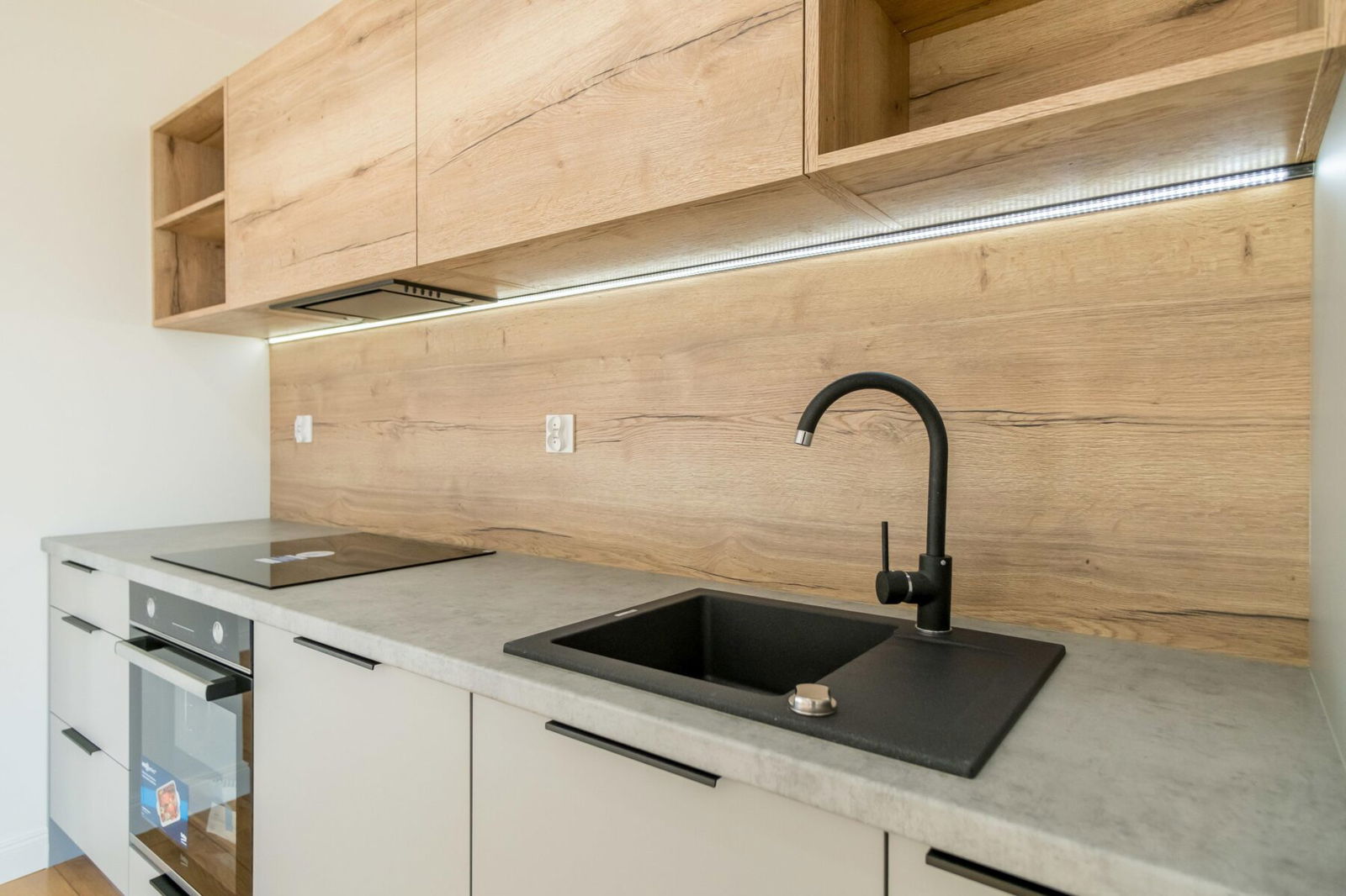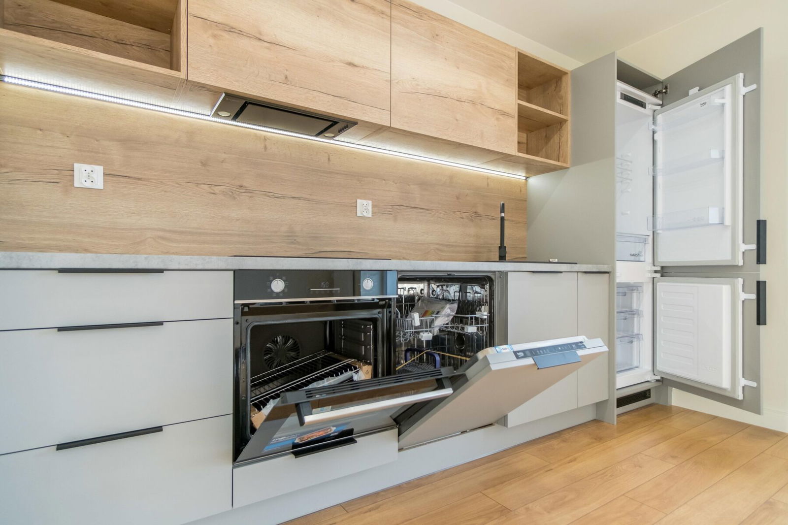 - kuchnie zostały wyposażone w meble i sprzęt AGD w zabudowie, łazienki w biały montaż oraz meble,