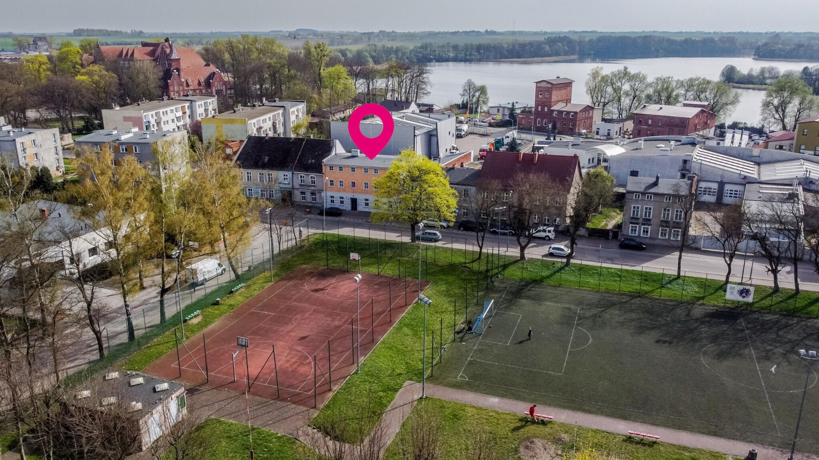 W okolicy znajdziesz jezioro Zamkowe, plażę miejską, las, centrum handlowe, szkołę, przedszkole, przychodnię lekarską, restauracje, kort tenisowy, fitness, bank, aptekę oraz sklepy. Lokalizacja jest idealna dla miłośników sportów wodnych i osób ceniących bliskość natury.