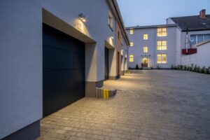 - Ogrodzony teren wykończony w wysokim standardzie z indywidualną bramą na pilota