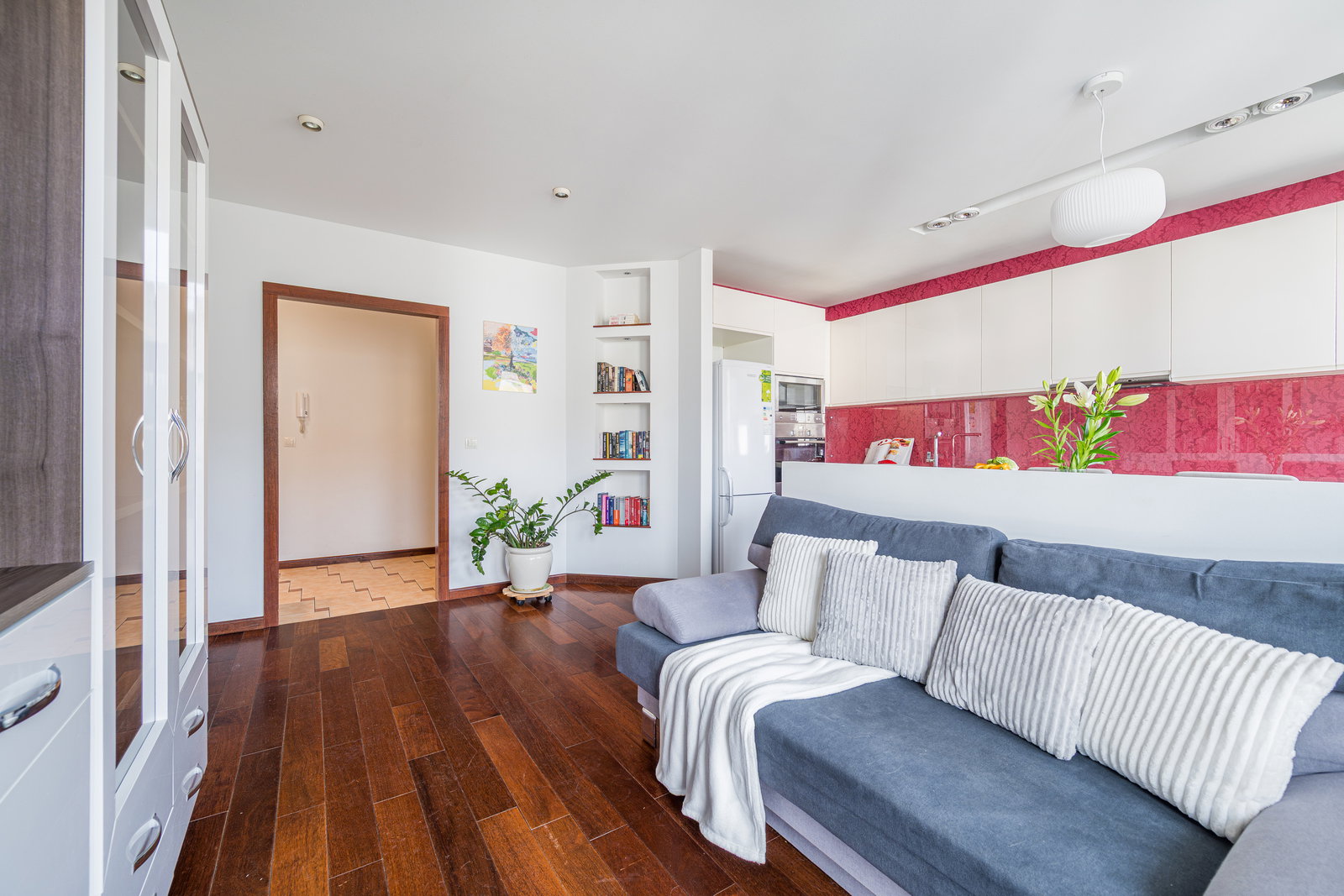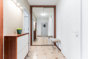 Większość mebli widocznych na zdjęciach zostaje w mieszkaniu. W korytarzu pojemna, głęboka szafa.