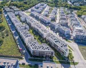 To doskonały przykład nowoczesnej architektury, która łączy estetykę z funkcjonalnością. Elewacje willi miejskich wykończono eleganckimi płytkami ceramicznymi, nadając im niepowtarzalny charakter. W zależności od lokalizacji, mieszkańcy będą mieli do dyspozycji przestronne balkony, tarasy lub prywatne ogródki. Dodatkowym atutem są tarasy na dachach, dostępne dla lokatorów najwyższych pięter – idealne miejsce na relaks z widokiem.