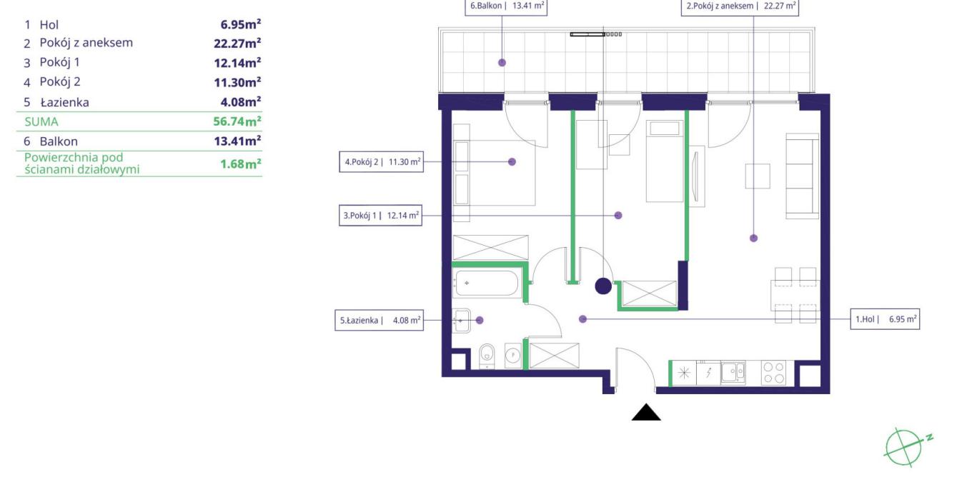 - Powierzchnia: 56.74 m2