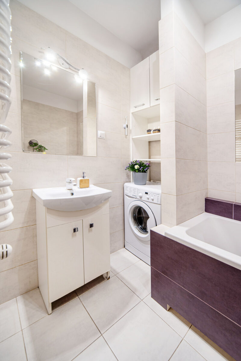 Łazienka -wanna, pralka zlew, wc.
