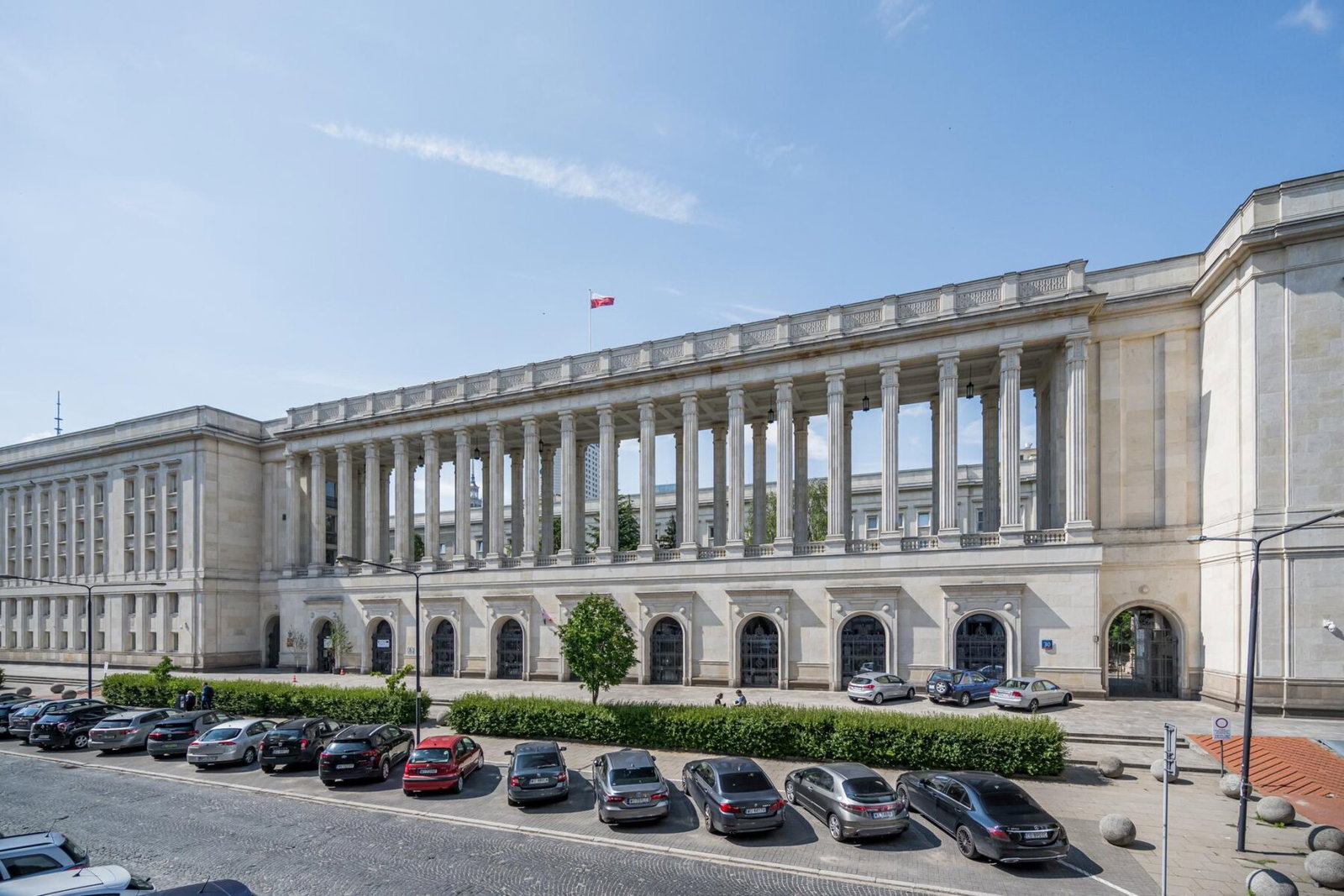 Takiego widoku, mieszkając w samym sercu Warszawy, na dwurzędową kolumnadę poprzedzającą budynek Ministerstwa Rolnictwa i odgradzającą go od ulicy Wspólnej może pozazdrościć każdy. Kolumnada wybudowana wraz z gmachem w latach 1951-1955, według projektu Jerzego Grabowskiego, Stanisława Jankowskiego i Jana Knothe, jest jednym z ciekawszych przykładów architektury w Warszawie. W naszej ofercie vis a vis monumentalnych kolumn kawalerka z przepięknym trapezowatym wykuszem w słynnej kamienicy rodziny Pinesów. Zapraszamy !