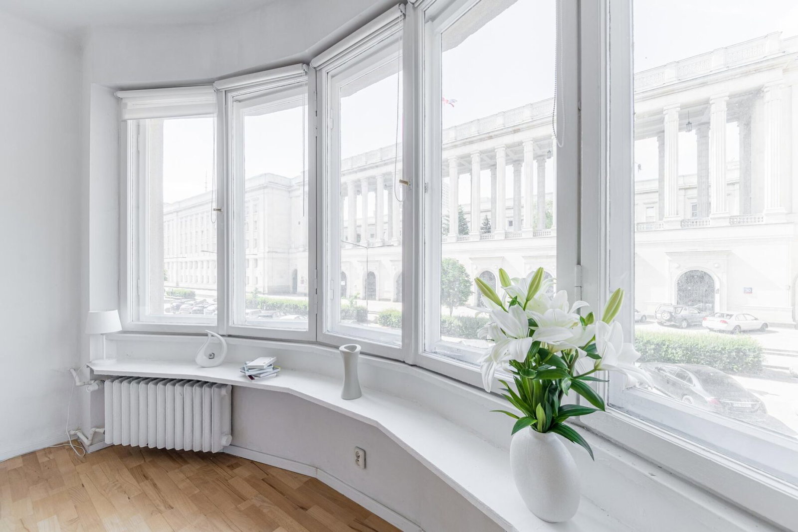 Kawalerka o niewielkiej powierzchni niespełna 22 m2, której niezwykły urok stanowi wykuszowe okno z widokiem na kolumnadę przy ul. Wspólnej w Warszawie.