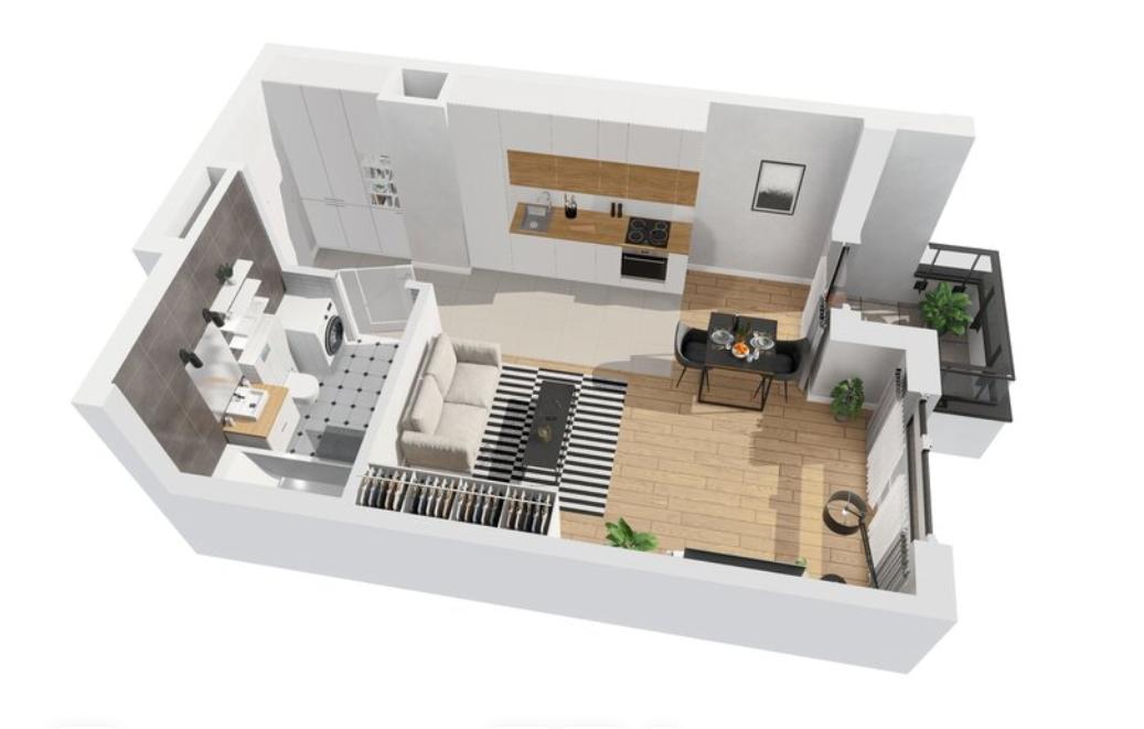 Nowoczesne jednopokojowe mieszkanie z loggią