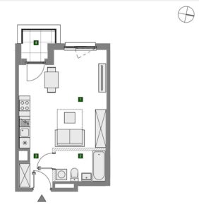 Z radością prezentujemy nowoczesną kawalerkę z balkonem na nowym osiedlu na warszawskich Włochach.