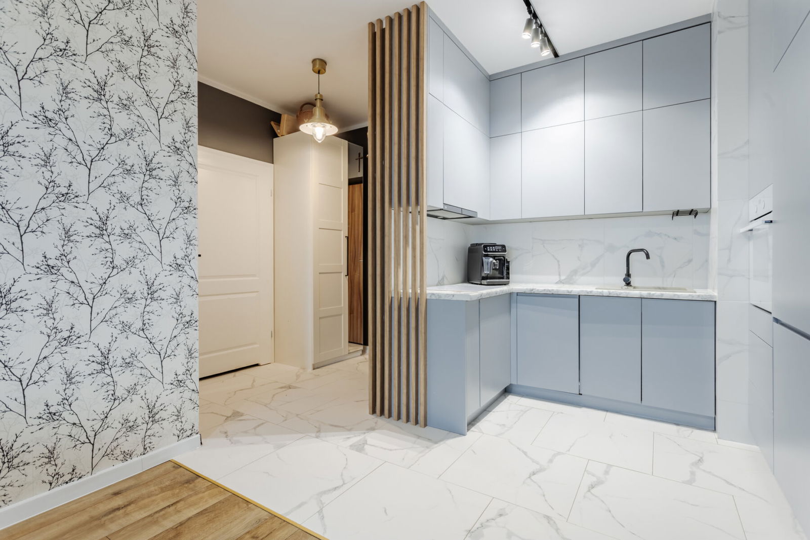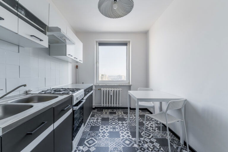 Mieszkanie jest w bardzo dobrym stanie, ładnie utrzymane i przemyślane. Stolarka kuchenna została wykonana na zamówienie, a na podłogach znajdują się gres i panele.