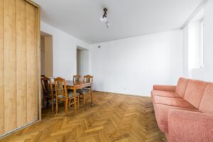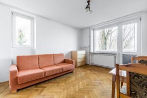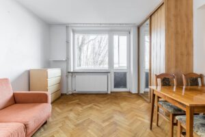 Do remontu lub odświeżenia. Podłogi w pokoju są wyłożone parkietem dębowym nadającym się do cyklinowania. Ściany odmalowane na biało. W łazience glazura, na podłodze w hallu terakota. Okna i grzejniki nowe. Instalacja kanalizacyjna wymieniona w 2001 r a kanalizacyjna w 2015 r. Istnieje możliwość przeniesienia aneksu kuchennego do pokoju dziennego i wykonania szaf w hallu.