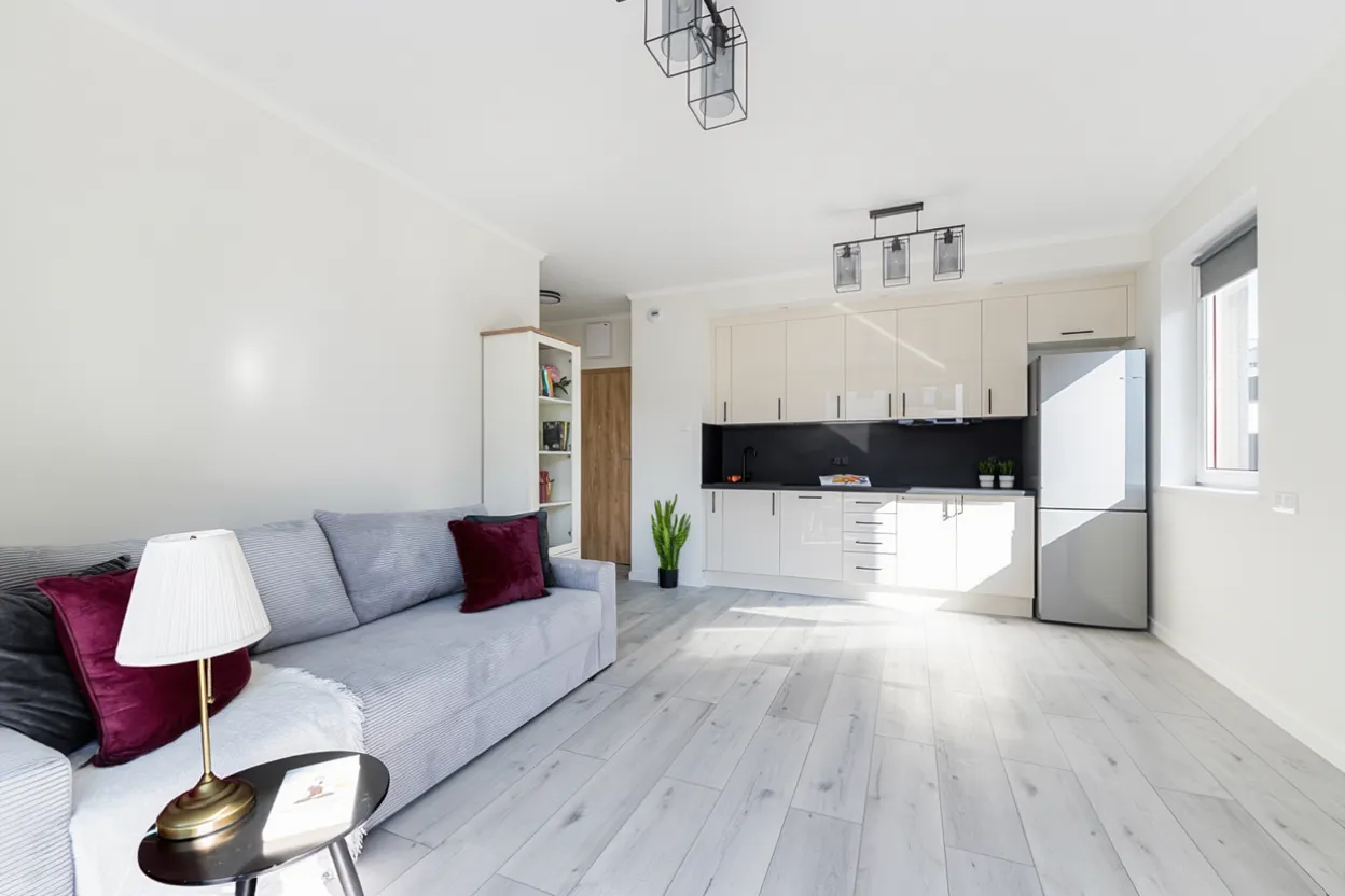 Kawalerka jest nowa, wykończona i umeblowana, gotowa do wprowadzenia się.