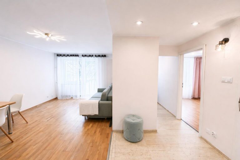 - dobra lokalizacja: szybki dojazd tramwajem do Centrum, bliskość lotniska Chopina i głównych arterii komunikacyjnych (S8- 6 minut)