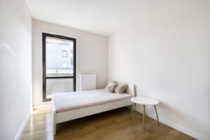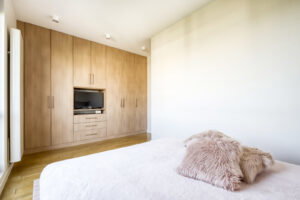 W sypialni głównej znajduje się duża, zabudowana szafa oraz duże łóżko. Z tego pokoju również wyjdziesz na balkon.
