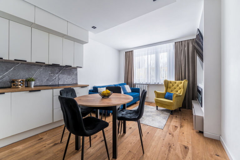 Mieszkanie wyposażone w sprzęt AGD, lodówka, piekarnik, kuchenka, okap, zmywarka