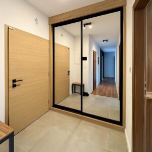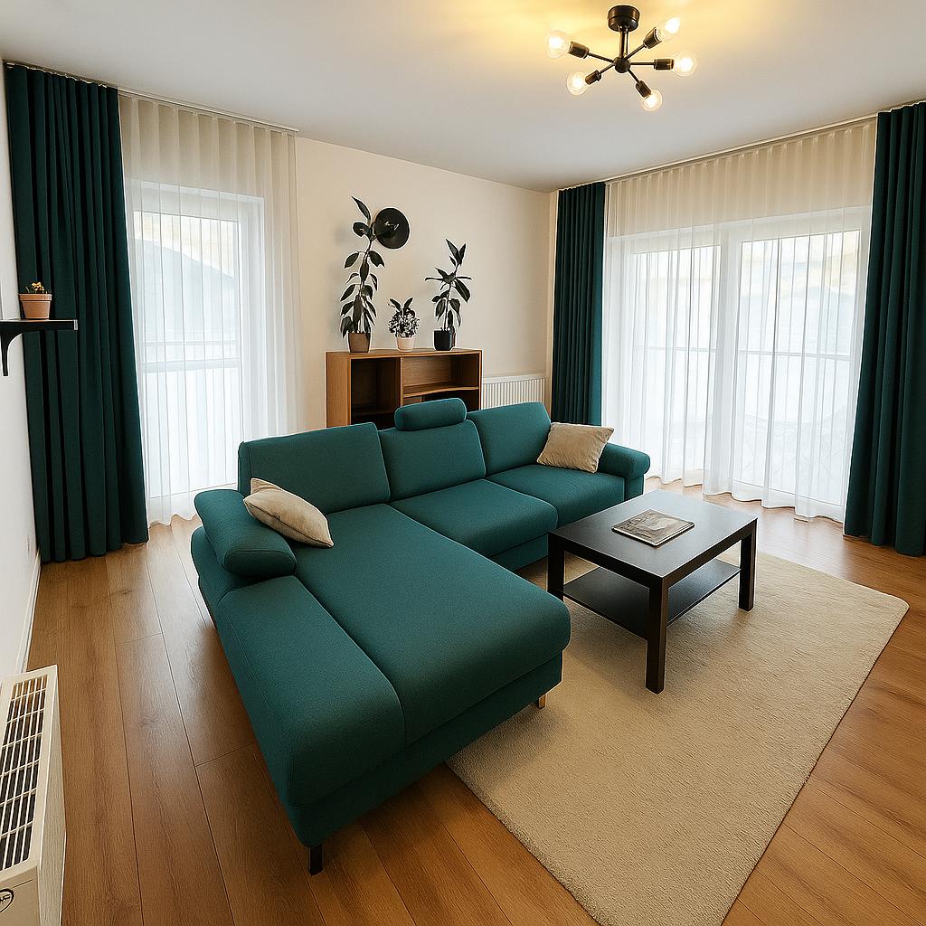Mieszkanie jest w pełni umeblowane i gotowe do wprowadzenia się od zaraz. Zostało wykończone z użyciem materiałów wysokiej jakości – włoski gres na balkonach, trwałe tynki, nowoczesna stolarka okienna PCV o wysokich parametrach izolacyjnych (Ug=0,5 / Uw<1,15), eleganckie drzwi wejściowe jednolite z klatką schodową. Ekspozycja okien na trzy strony świata – północ, wschód i zachód – zapewnia naturalne doświetlenie przez cały dzień.