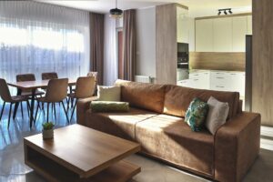 To mieszkanie zostało starannie zaprojektowane z myślą o nowoczesnym stylu życia, przy jednoczesnym zachowaniu klimatu Starego Miasta Elbląga. Przestronny salon łączy się z jadalnią, tworząc otwartą przestrzeń idealną do spotkań rodzinnych czy przyjęć. Duże okna zapewniają mnóstwo naturalnego światła, a słoneczny balkon jest doskonałym miejscem na poranną kawę lub wieczorne relaksujące chwile.