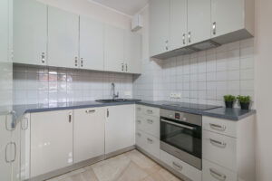 Mieszkanie jest w pełni umeblowane i wyposażone, gotowe do zamieszkania. Duże okna zapewniają doskonałe doświetlenie wnętrza przez cały dzień.