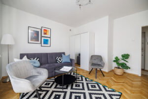 Głównym atutem mieszkania jest jego praktyczny układ oraz położenie – w samym centrum miasta, bliskość restauracji, atrakcji kulturalnych, komunikacji publicznej oraz terenów zielonych.