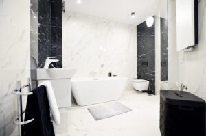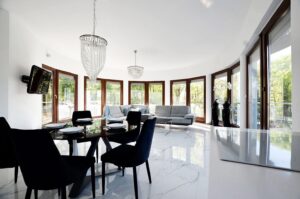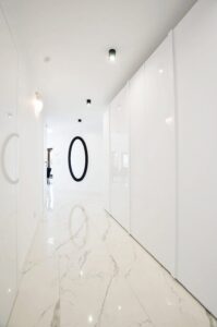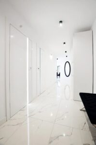 - Podłogi w pomieszczeniach: Płytki