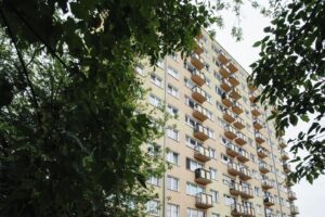 Mieszkanie usytuowane jest na Bielanach w wieżowcu na IX piętrze przy ul. Kasprowicza.