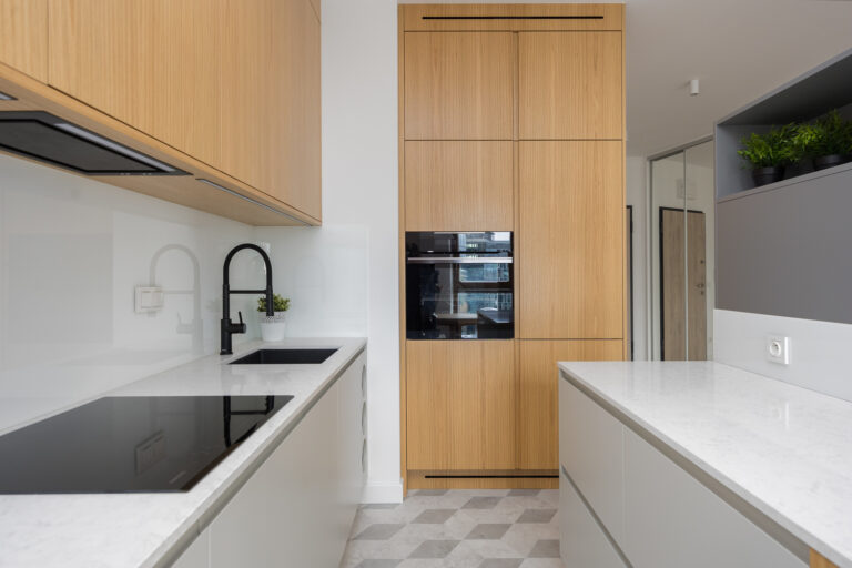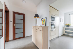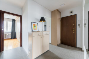 Przedpokój szafa ubraniowa, podłoga- gres.