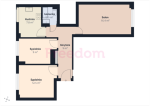 - Powierzchnie pokoi: 16,4 12,5 9,