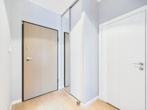 W przedpokoju praktyczne, duże szafy ubraniowe