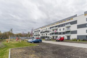 Osiedle znajduje się w spokojnej okolicy, co zapewnia komfort i bezpieczeństwo. W pobliżu znajdują się tereny zielone oraz infrastruktura, która ułatwia codzienne życie.