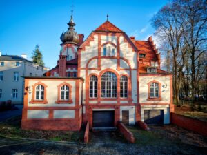 Budynek o bogatych walorach architektonicznych. Dwukondygnacyjny, całkowicie podpiwniczony z dachem stromym i poddaszem nieużytkowym. Wejście główne i dojazd od ulicy Browarnej. Wzdłuż parking. Przy wjeździe na zaplecze, po stronie północnej wejście służbowe i pochylnia dla osób niepełnosprawnych do wejścia głównego. Po stronie południowej dojazd techniczny (awaryjny). Dobrze zachowany drzewostan. Przygotowany program robót budowlanych przez Pracownię Architektoniczną Wojtasik. Budynek przeznaczony na cele usługowo - administracyjne.