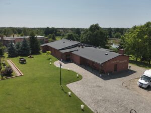 Obiekt dysponuje profesjonalną salą eventową, budynkiem hotelowym z 18-24 miejscami noclegowymi oraz wielokondygnacyjnym budynkiem mieszkalnym. Dodatkowo, znajduje się tam stylowa stajnia oraz inne budynki gospodarcze, co tworzy unikalny klimat agroturystyki.