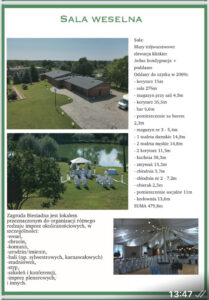 - - Sala Eventowa: Serce obiektu, generujące stabilne dochody z wesel i wydarzeń.